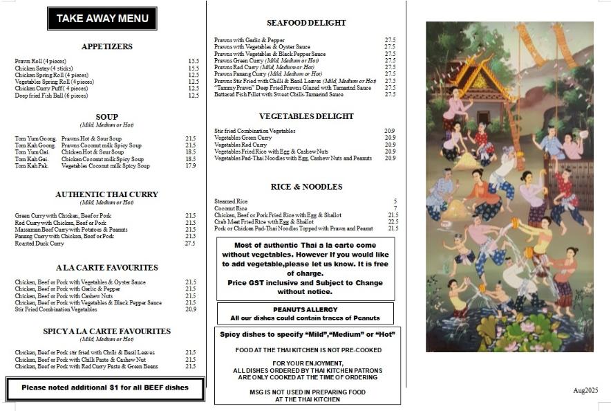 Thai kitchen is a husband and wife business. We and our dedicated staff strive to achieve excellence. You will never be forsaken at the Thai kitchen, For you, our customer are the Heart, Soul and Vitality of this very special dining place. Without you there would be no Thai kitchen.